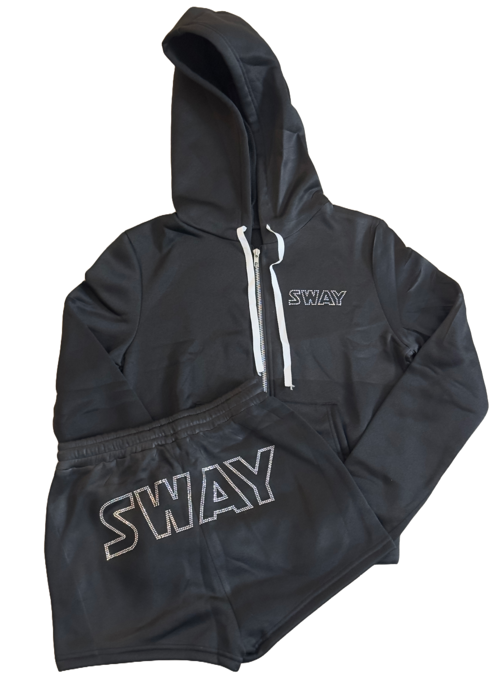Black Rhinestones Women Shorts set